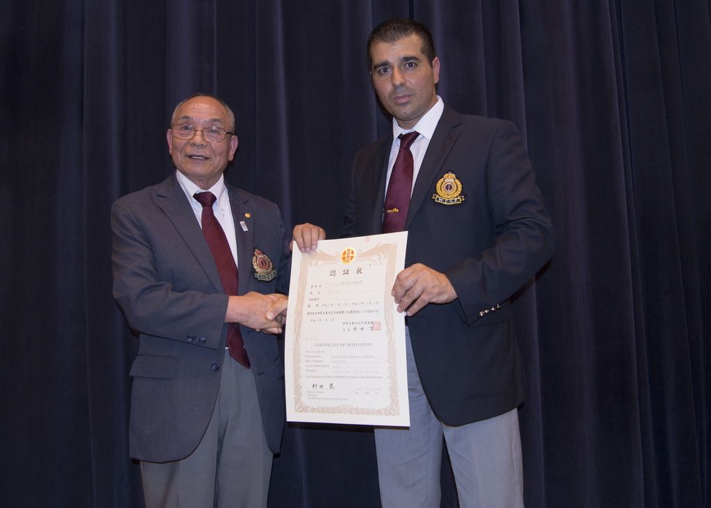 After the end of the Championships, at the farewell dinner that followed, certificates of representation, has been awarded by the president of World Federation Mr Hiroshi Murata, to all the official representatives including Greece. The certificate received George Pelekis.