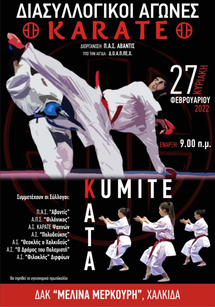 Με πολύ μεγάλη επιτυχία πραγματοποιήθηκαν την Κυριακή 27 Φεβρουαρίου 2022 στην Χαλκίδα, οι Διασυλλογικοί αγώνες Καράτε που διοργάνωσε ο Π.Α.Σ. “Αβαντίς” με την έγκριση της Ελληνικής Ομοσπονδίας Καράτε και την βοήθεια της Επιτροπής Διαιτησίας με την παραχώρηση διαιτητών.