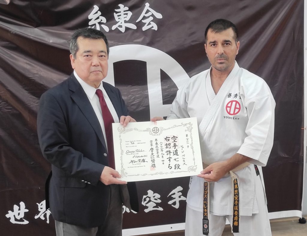 Μετά το πέρας της εκδήλωσης ο Soke Kenyu Mabuni διεξήγαγε προσωπική εξέταση στον εκπρόσωπο του στην Ελλάδα καθώς και της Παγκόσμιας Ομοσπονδίας Shito-ryu Karate-do, Γιώργο Πελέκη. Μέρος των εξετάσεων έγινε ενώπιον κοινού και τις οποίες με επιτυχία ολοκλήρωσε, με αποτέλεσμα την προαγωγή του στο 7ο Dan, ενώ ο Master Mabuni, αρχηγός του Shito-ryu Karate-do σε όλο τον κόσμο, του απένειμε προσωπικό δίπλωμα από το ιστορικό “Yoshukan” dojo.