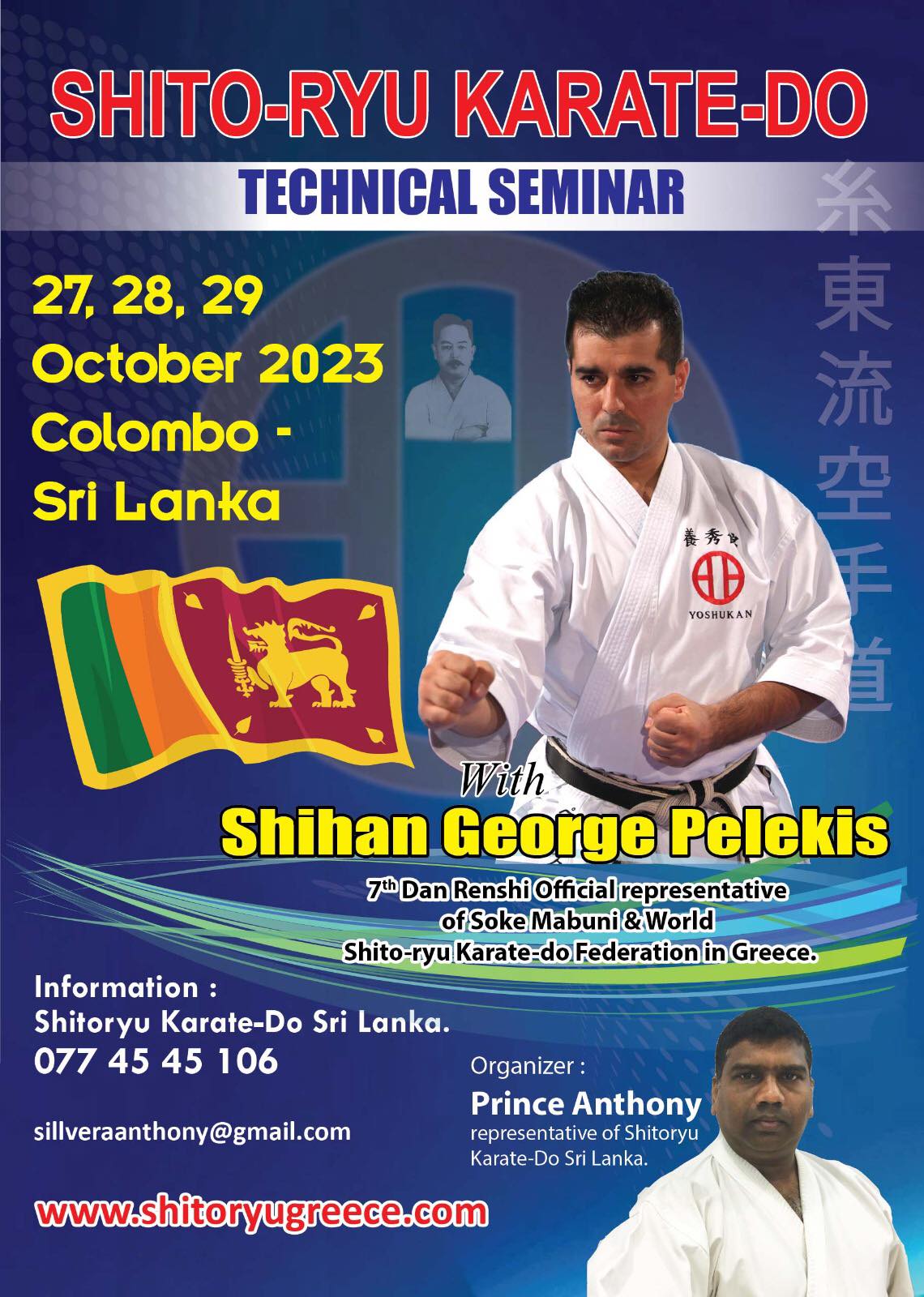 Κοινοποίηση άρθρου: Shitoryu Karate-Do Technical Seminar with Shihan George Pelekis in Sri Lanka 27,28 & 20/10/2023 09:30 Colombo – Sri Lanka Organizer: Sensei Prince Anthony Κοινοποίηση άρθρου: