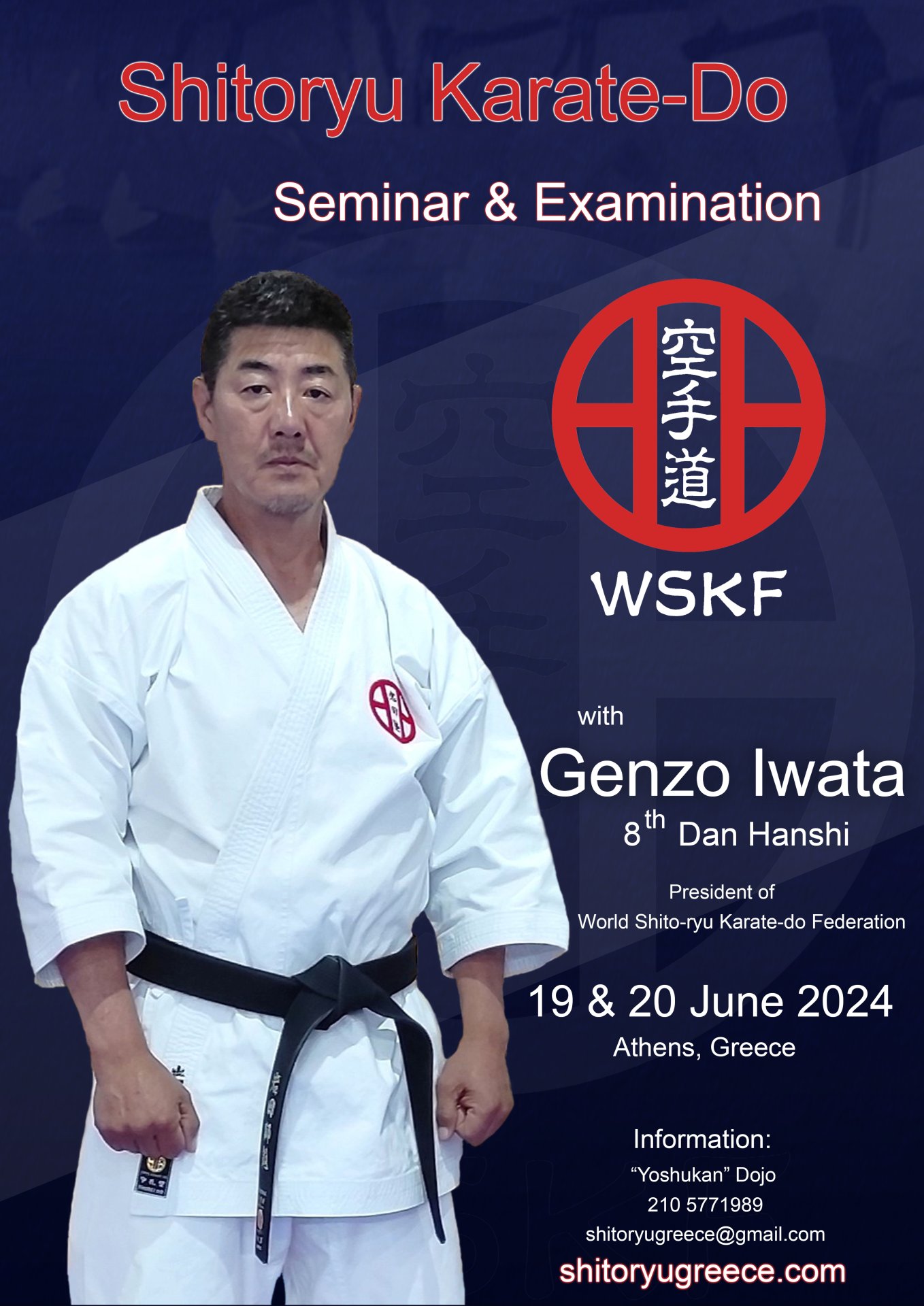 Τεχνικό σεμινάριο και προαγωγικές εξετάσεις Νταν πραγματοποιήθηκαν στην Αθήνα στις 19 & 20 Ιουνίου 2024 στο οποίο δίδαξε ο Πρόεδρος της Παγκόσμιας Ομοσπονδίας Shito-ryu Karate-do, Genzo Iwata.
