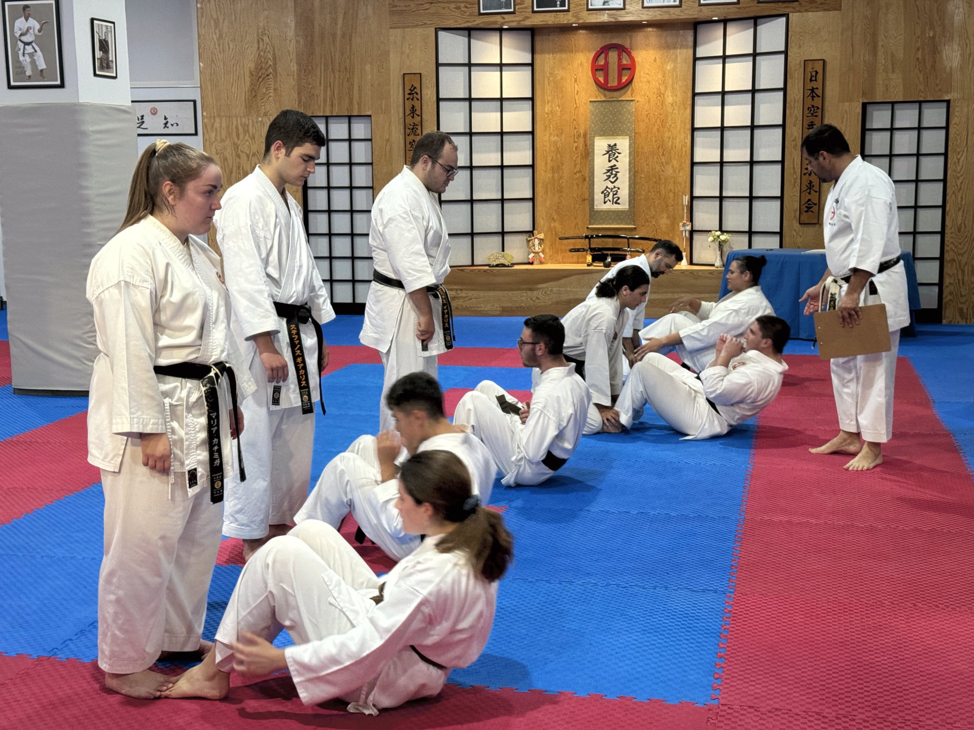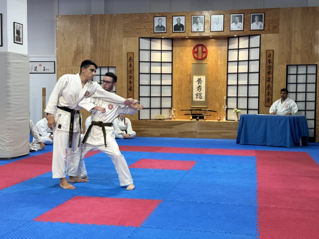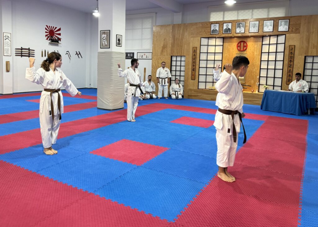 Και φέτος η συγκεκριμένη εξέταση ήταν απαιτητική και διήρκεσε αρκετές ώρες περιλαμβάνοντας γραπτές και θεωρητικές ερωτήσεις καθώς και πρακτική κατά το μεγαλύτερο μέρος (Kihon, Kata, Bunkai, Kumite, Αυτοάμυνα και φυσική κατάσταση).