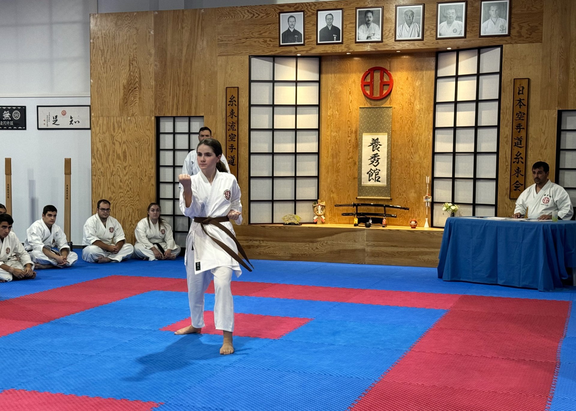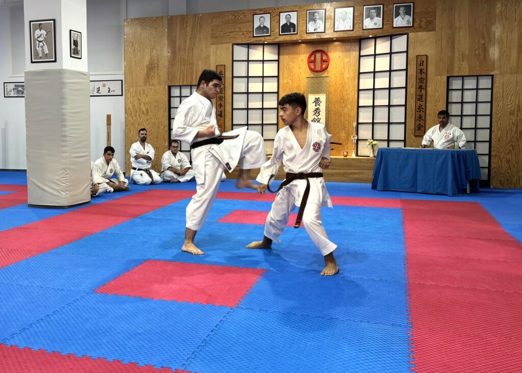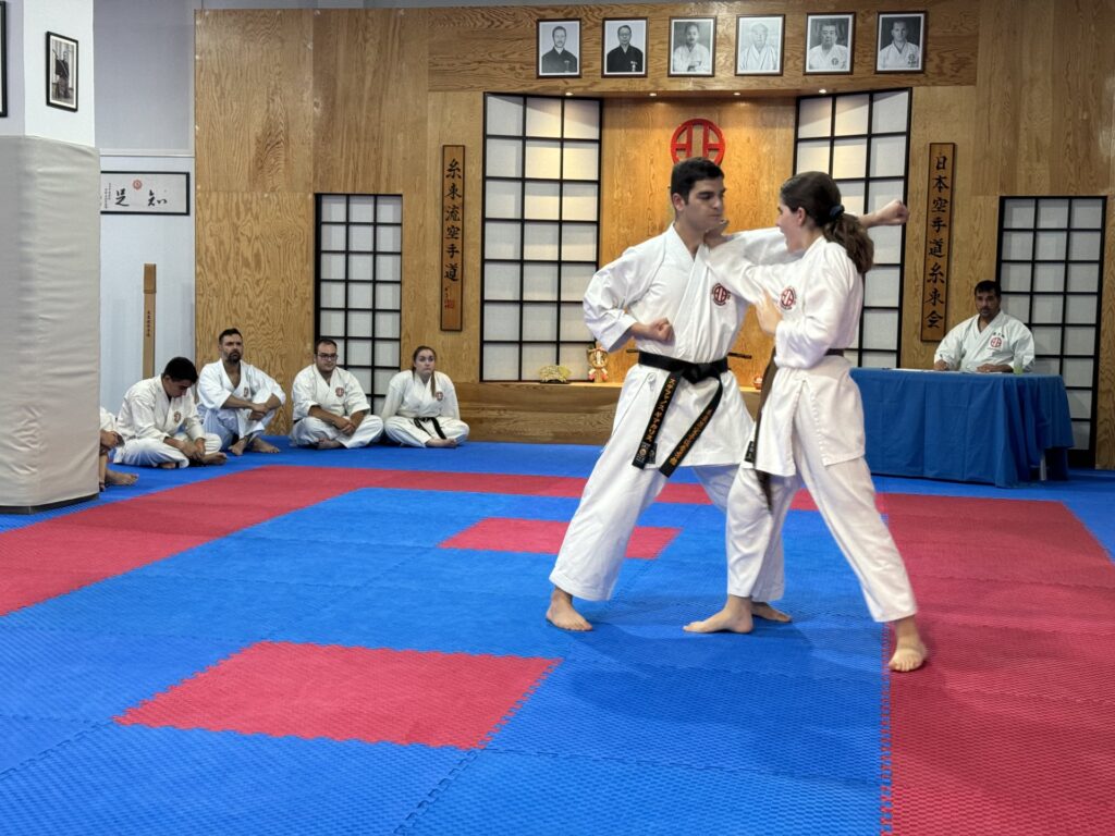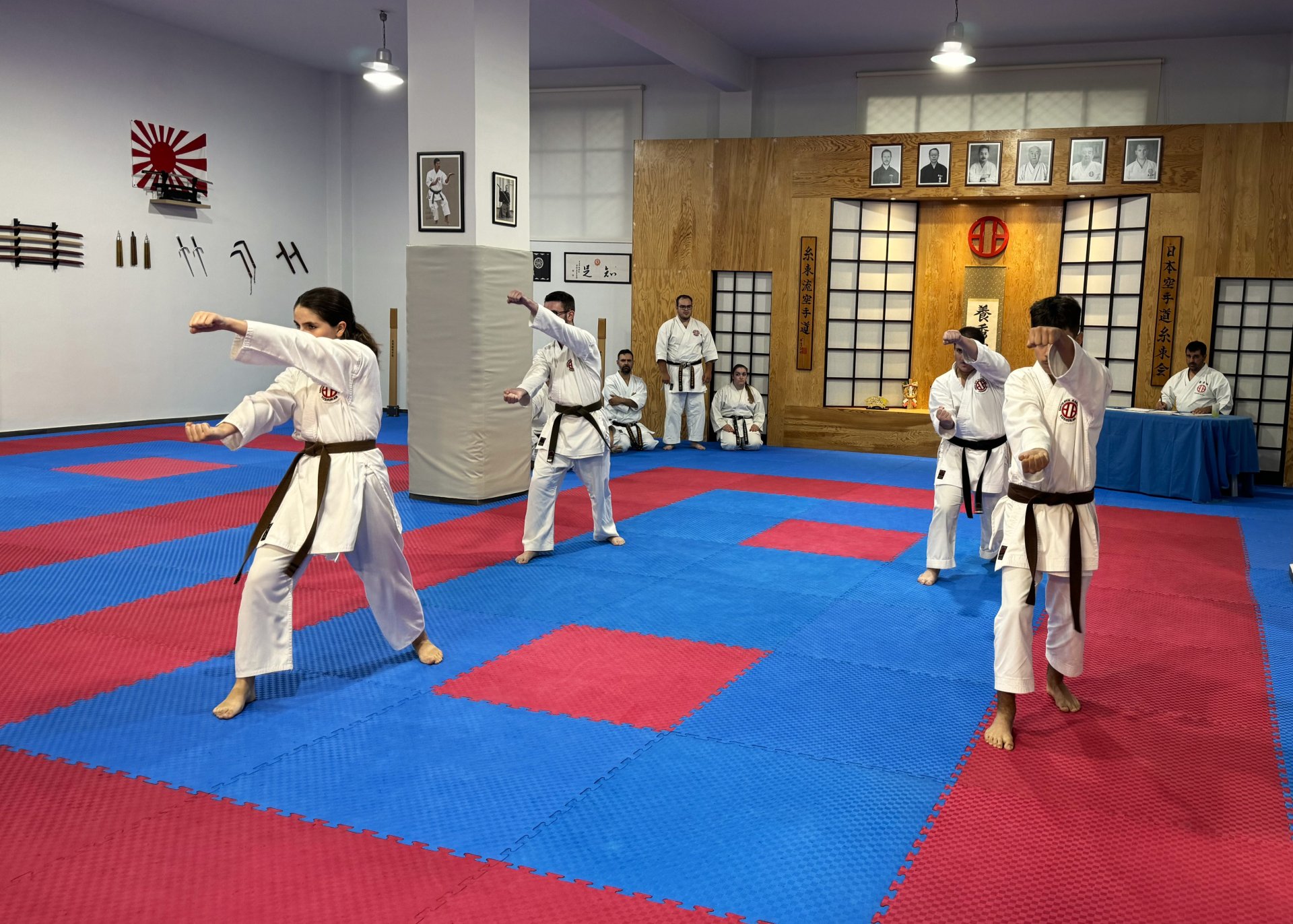 Και φέτος η συγκεκριμένη εξέταση ήταν απαιτητική και διήρκεσε αρκετές ώρες περιλαμβάνοντας γραπτές και θεωρητικές ερωτήσεις καθώς και πρακτική κατά το μεγαλύτερο μέρος (Kihon, Kata, Bunkai, Kumite, Αυτοάμυνα και φυσική κατάσταση).
