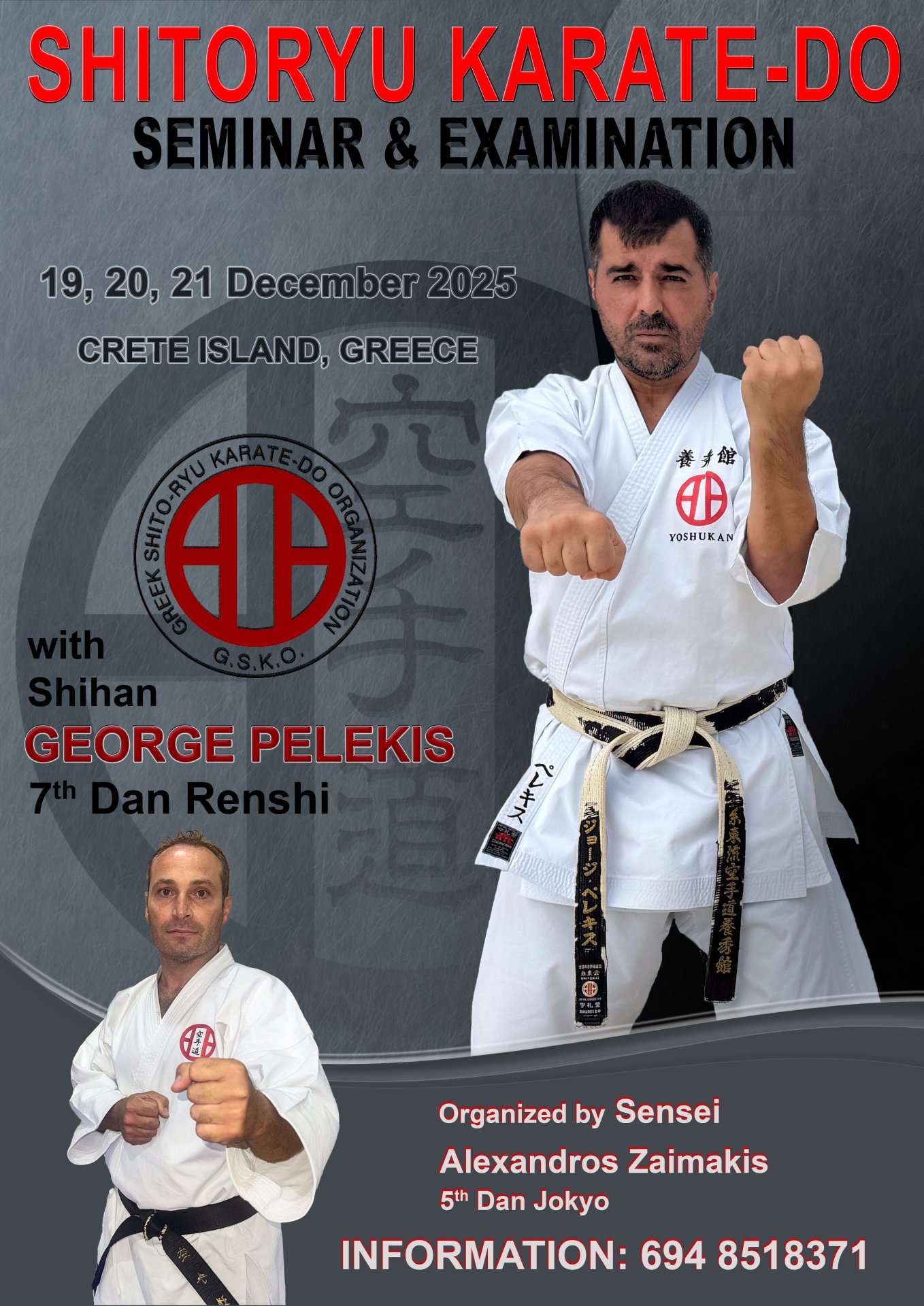 Events Shitoryu Karate-Do Technical Seminar & Examination with George Pelekis in Crete island Κοινοποίηση άρθρου: Shitoryu Karate-Do Technical Seminar & Examination with George Pelekis in Crete island 19,20 & 21/12/2025 09:30… Heraklion & Arkalohori, Crete island – Greece Organizer: Sensei Alexandros Zaimakis Κοινοποίηση άρθρου: