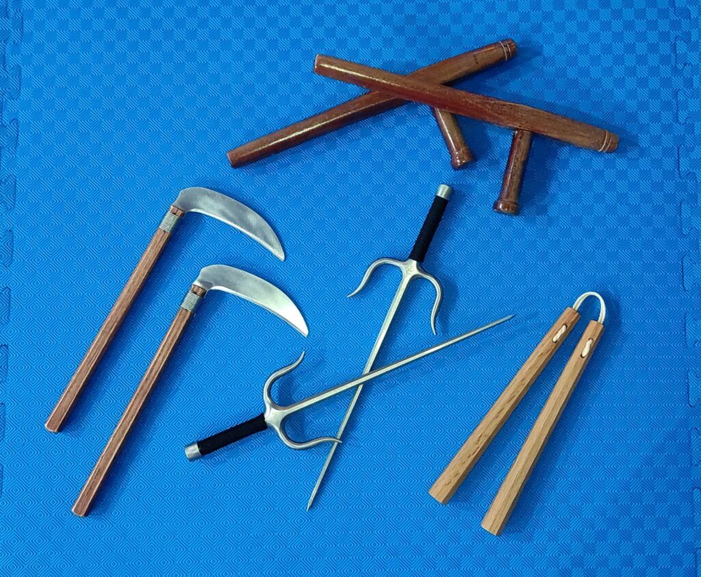 Είναι αλήθεια ότι οι κάτοικοι της Οκινάουα, υπό την κυριαρχία ξένων δυνάμεων, είχαν απαγορευθεί να φέρουν όπλα ή να ασκούνται μαζί τους δημόσια. Αλλά οι μάχες βασισμένες στα όπλα που ασκούσαν κρυφά (και οι τύποι όπλων με τους οποίους ασκήθηκαν) είχαν ισχυρές κινεζικές ρίζες και παραδείγματα παρόμοιων όπλων έχουν βρεθεί στην Κίνα, την Ταϊλάνδη και την Ινδονησία πριν από τις προσαρμογές της Οκινάουα.